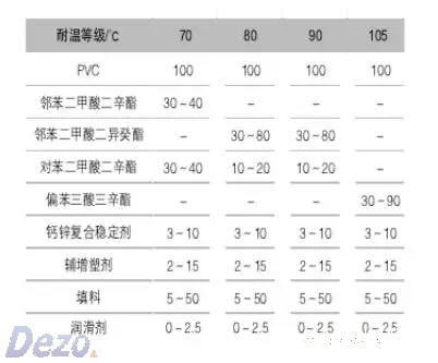蘇朝北[3]~ [4]等經(jīng)過一系列研究,用國產(chǎn)鈣/鋅穩(wěn)定劑,配合適當(dāng)溫度等級的增塑劑,分別制得了70,90,105℃的環(huán)保PVC護(hù)套料,環(huán)保要求符合RoHS規(guī)定,性能可滿足GB/T 8815-2002的要求。