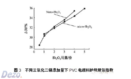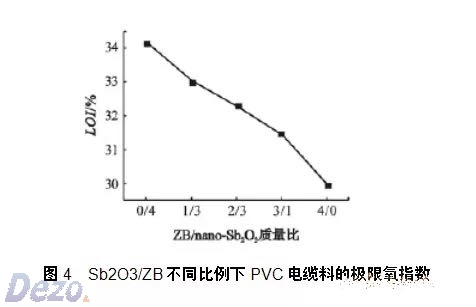 硼酸鋅 ( ZB) 與納米三氧化二銻復(fù)配阻燃劑對PVC 氧指數(shù)的影響