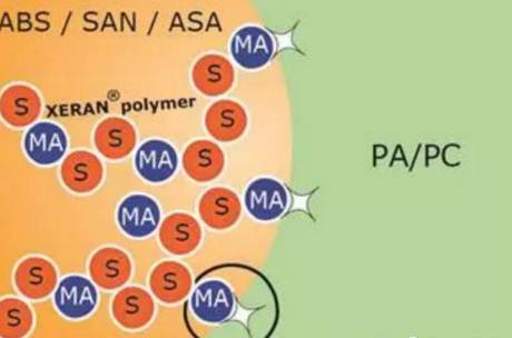 以ABS為例,直接將兩種材料共混得到“ABS”一定不是你想要的,因?yàn)樗男阅芤凰。為什么?huì)有這樣的差別呢?這就涉及到了高分子合金的關(guān)鍵技術(shù)——相容化技術(shù)。就ABS而言,大家可能知道他的生產(chǎn)方式是首先聚合得到的PB膠粉,然后以它為種子,另加丙烯腈和苯乙烯單體,接枝在PB膠粉上。這樣在PB膠粉的表面其實(shí)是PB-g-AS這種聚合物。而這種聚合物將兩種原本不相容的聚合物結(jié)合在一起,改善了原來(lái)體系的性能。相容劑一般是接枝聚合物。