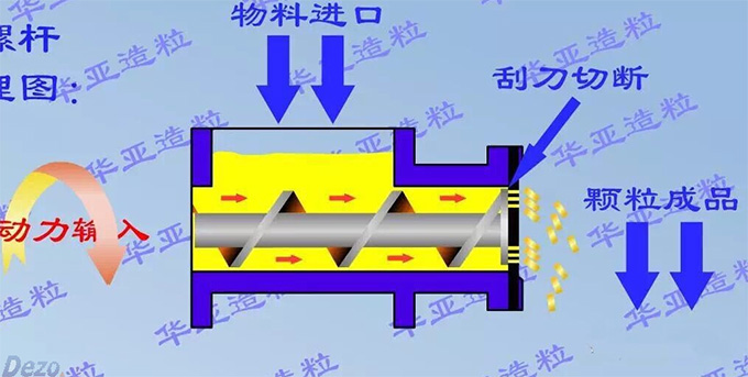 e、均化(計量)段,輸送和增壓,建立一定壓力,使模口處物料有一定的致密度,同時進一步混合,最終達到順利擠出造粒的目的。