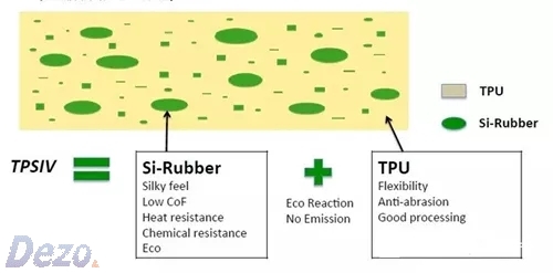 TPSiV,硅基熱塑性硫化膠,是硫化硅橡膠顆粒在熱塑性彈性體基材上形成。按照熱塑性基體不同,常見的TPSiV有:尼龍基體,TPU基體和聚烯烴基體。最早的TPSiV是出自美國道康寧,但國內(nèi)的成都思立可科技有限公司也有推出SI-TPV®產(chǎn)品。