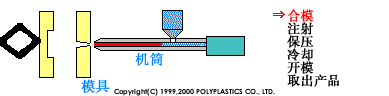 在一定溫度下,通過螺桿攪拌使塑料完全熔融,然后通過高壓射入模腔,經(jīng)冷卻固化后,得到成型品。