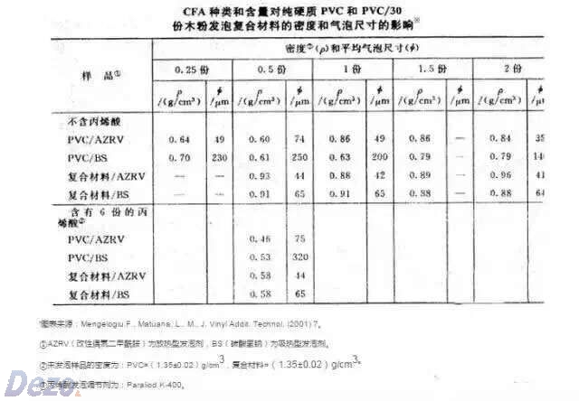 二、發(fā)泡劑種類和含量對PVC發(fā)泡及PVC木塑發(fā)泡制品的密度和氣泡尺寸的影響