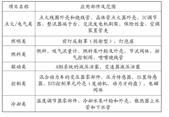 表1 PPS在汽車零部件用途明細(xì)表
