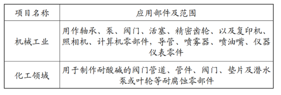 表4 PPS在機(jī)械工業(yè)和化工領(lǐng)域上的應(yīng)用