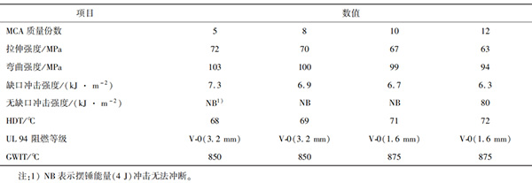 1 MCA添加量對(duì)改性PA6工程塑料的性能影響