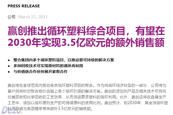 7. 贏創(chuàng)推出循環(huán)塑料綜合項目,有望在2030年實現(xiàn)3.5億歐元的額外銷售額