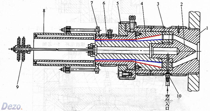 (1)直管式機頭 圖示為直管式機頭。其結(jié)構(gòu)