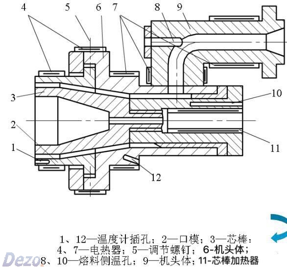 口模成型制品的外表面,芯棒成型制品的內(nèi)表面,故口模和芯棒的定型部分決定制品橫截面形狀和尺寸。