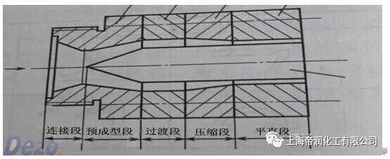 過渡段作用:固定芯棒支架,固定分流錐,壓縮總面積的作用(口模成型面積和過渡段截面積的設(shè)計(jì)作用);