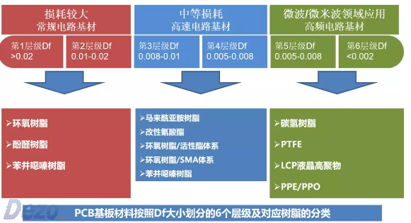 常見線路板主要的高頻高速材料有幾種:碳?xì)錁渲、PTFE、LCP液晶高聚物、PPE/PPO等。
