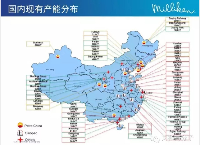 圖:國內(nèi)PP現(xiàn)有產(chǎn)能分布
